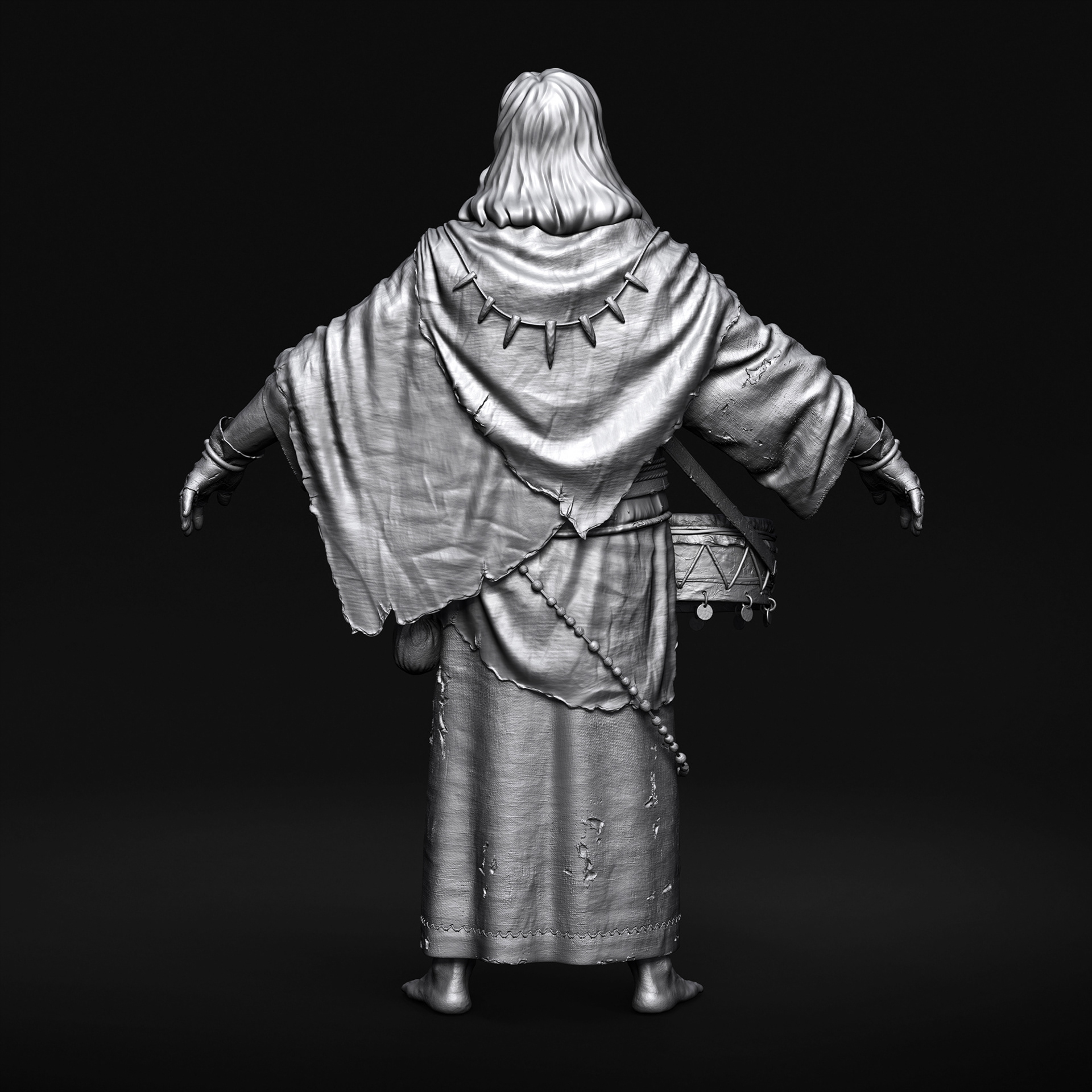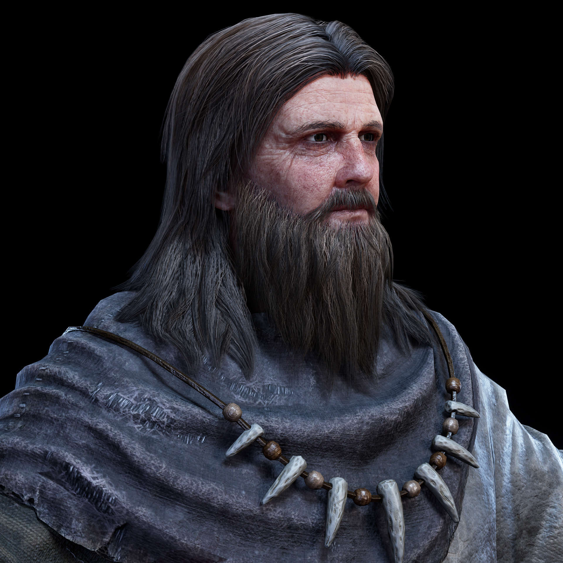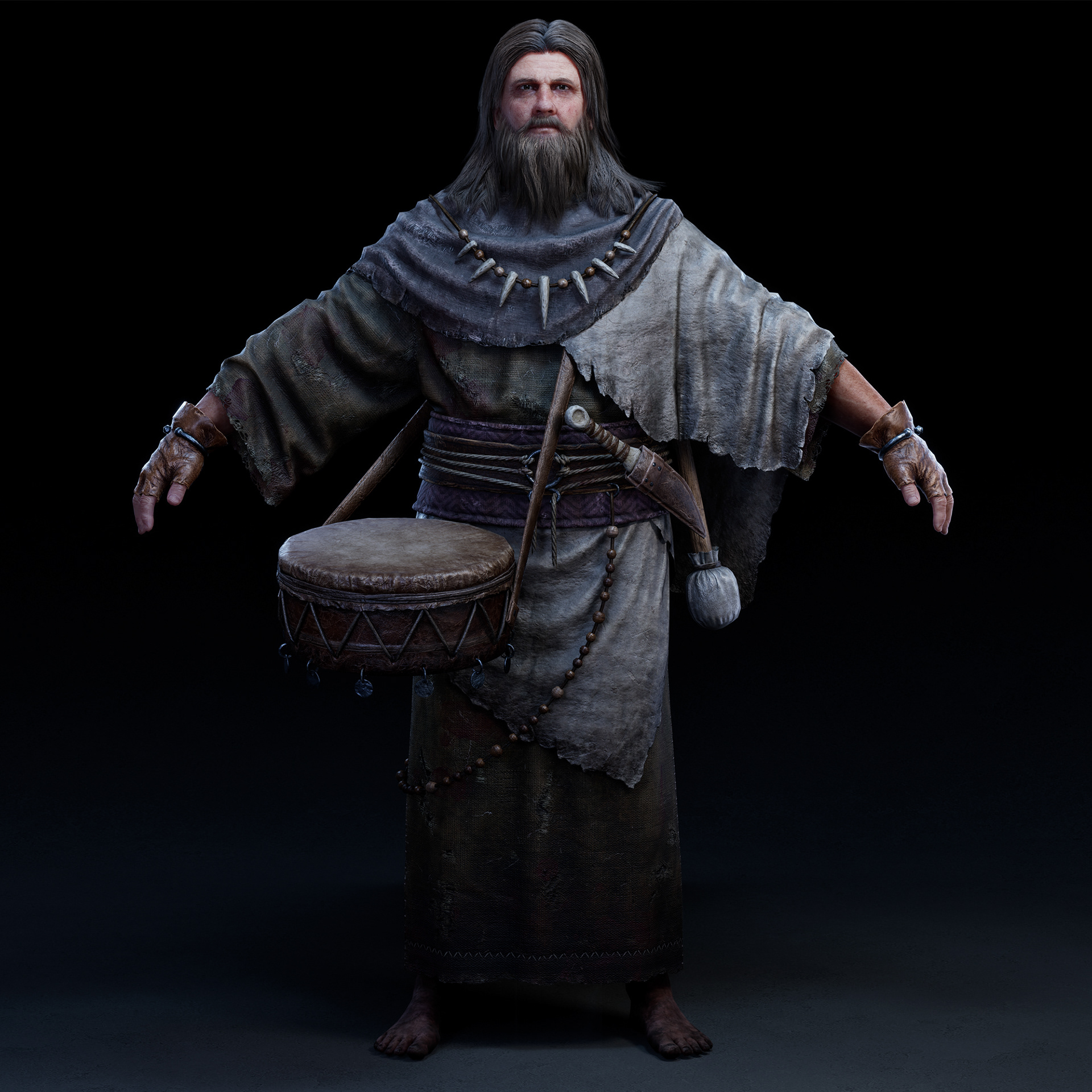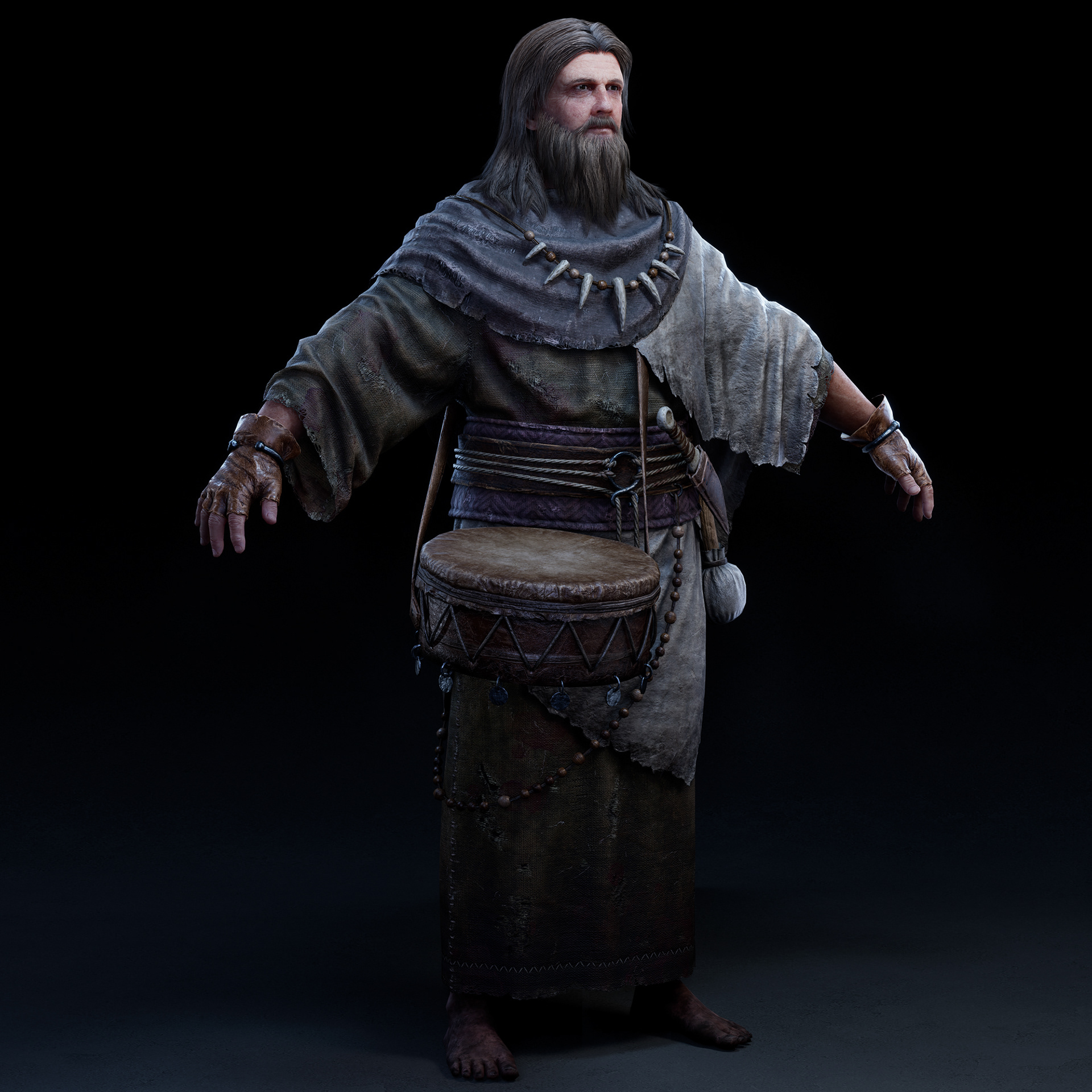"Preacher" character I crafted for Hordes of Hunger game. I was responsible for the full character creation pipeline, including block-out and high-poly sculpting in ZBrush, assets modeling in Blender, cloth simulation in Marvelous Designer, retopology in Blender, UV unwrapping in RizomUV, texturing in Substance Painter, grooming hair, beard and mustache (hair cards) and shader/texture configuration in Unreal Engine 5. Character based on a concept by Tomasz Badalski.