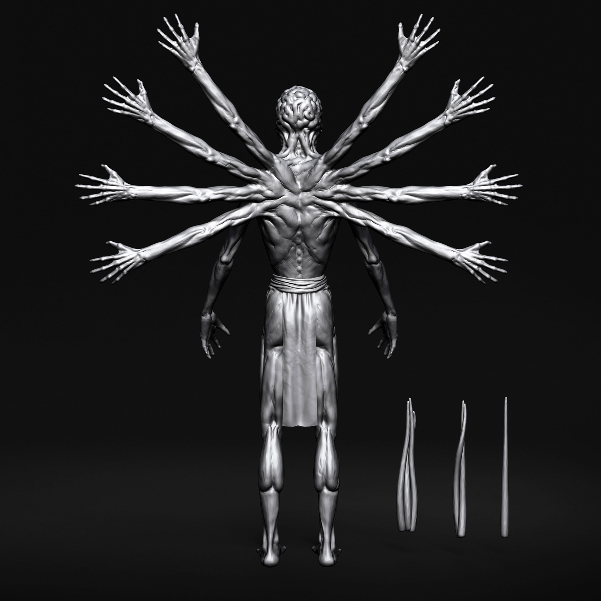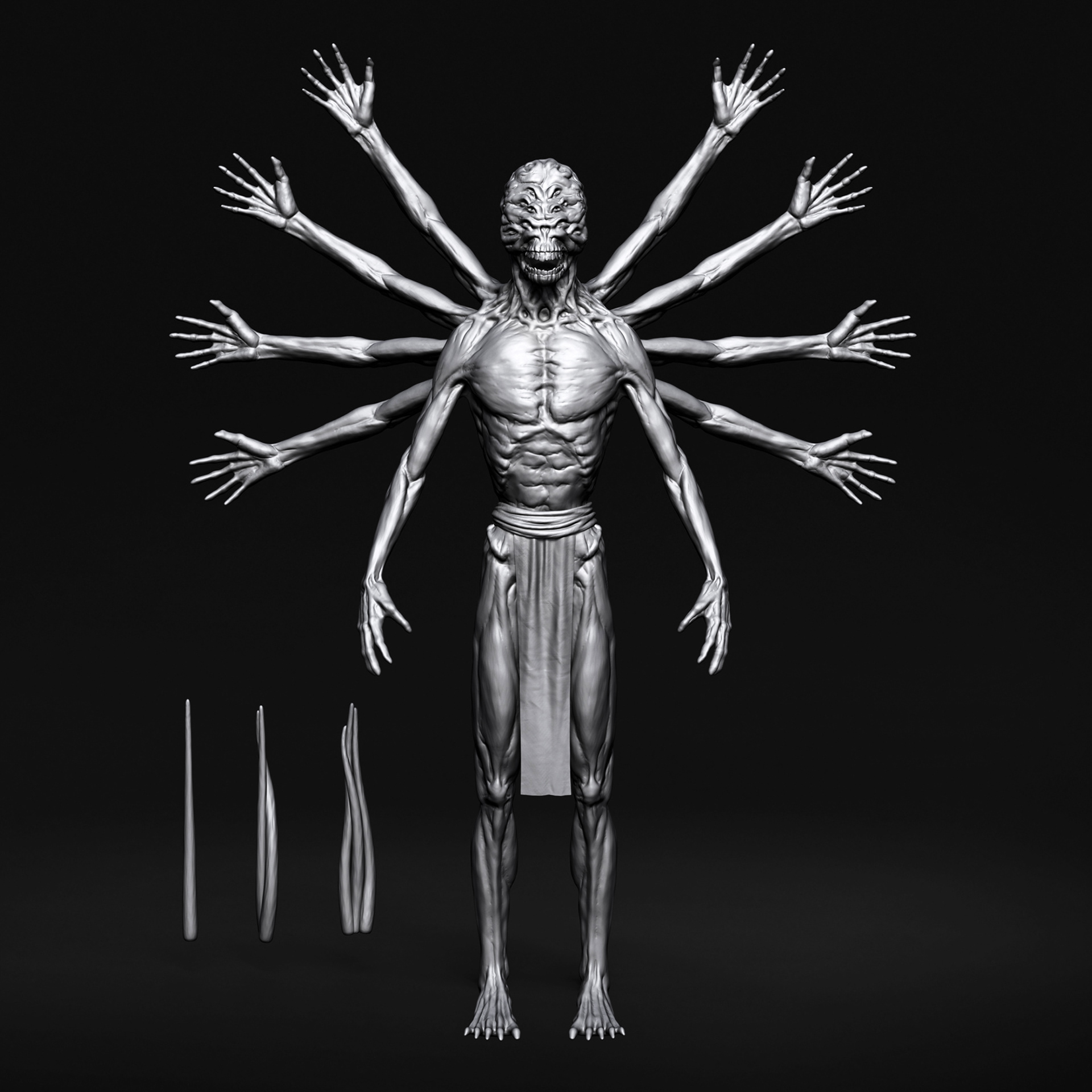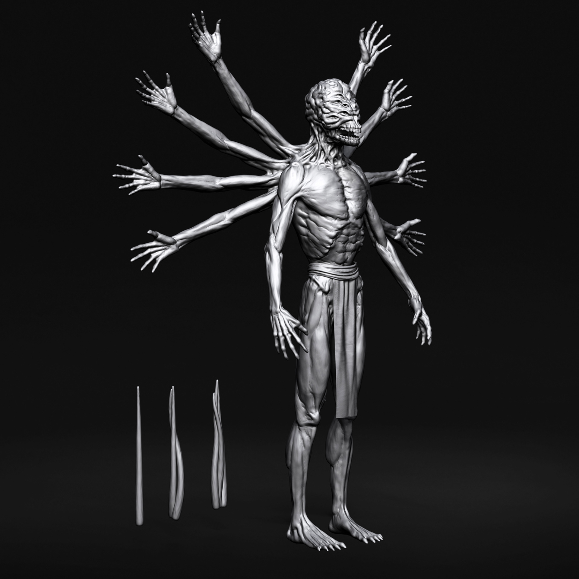 "Curse Mage" character I crafted for Hordes of Hunger game. I was responsible for the full creation pipeline, block-out, high-poly sculpting in ZBrush, retopology in Blender, UV unwrapping in RizomUV, texturing in Substance Painter and shader/texture configuration in Unreal Engine 5. Character based on a concept by Kinga Makowska.