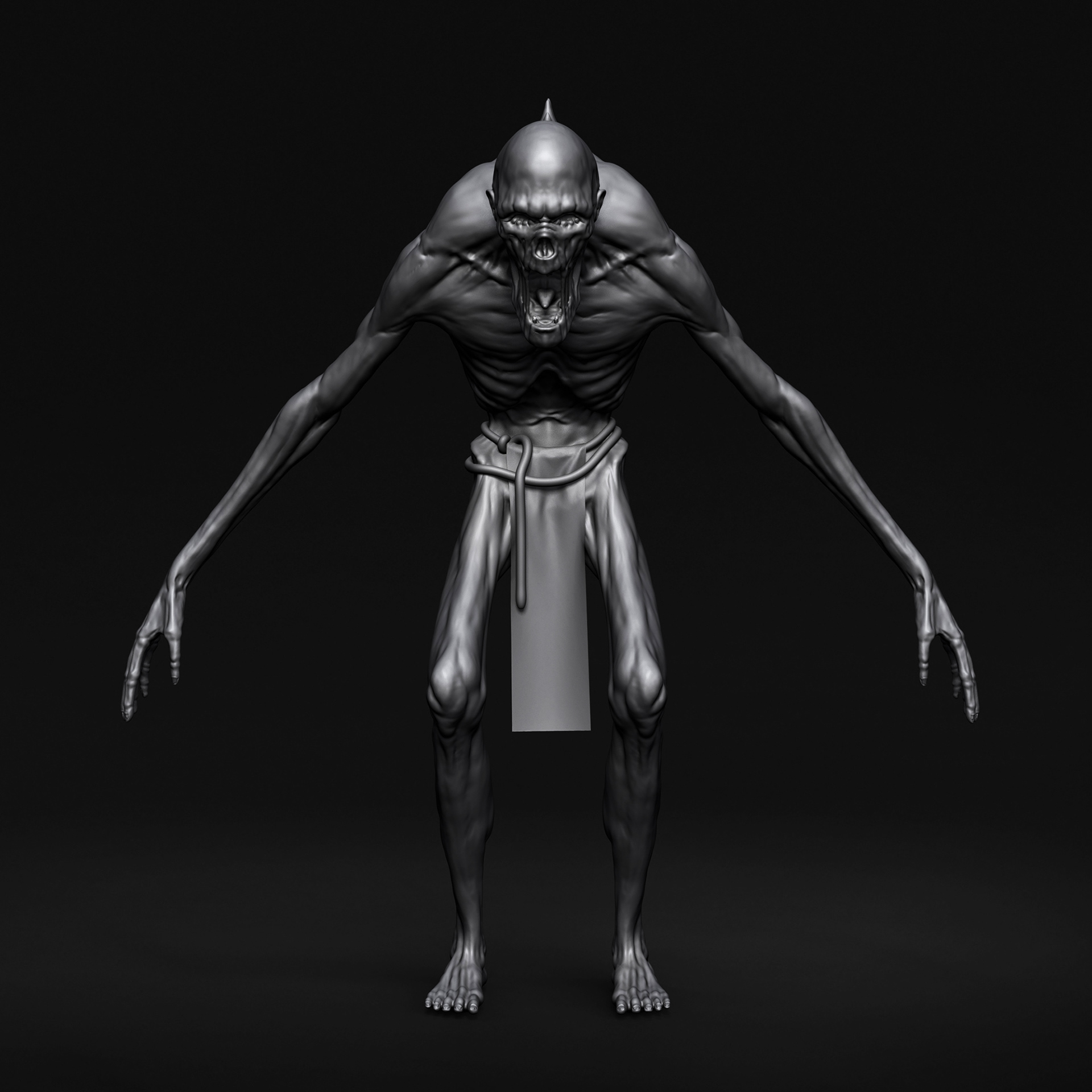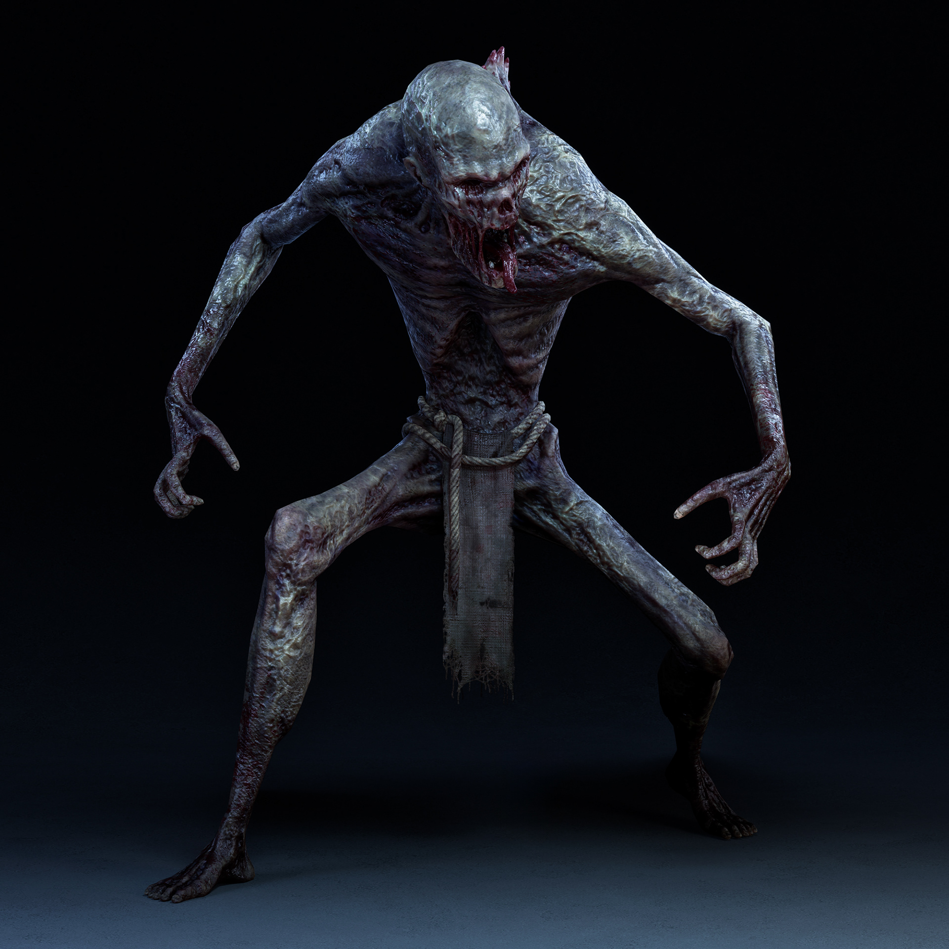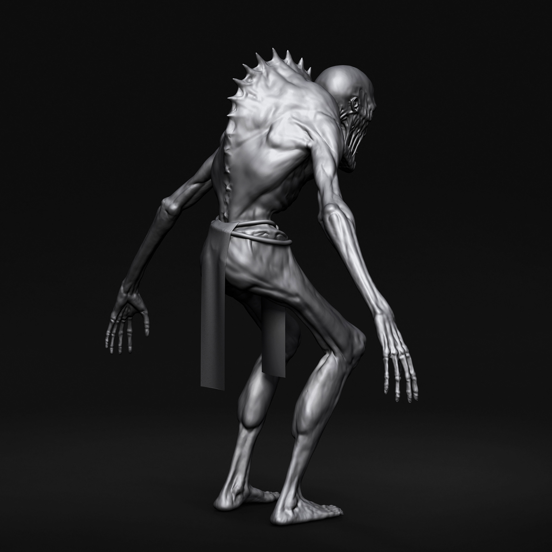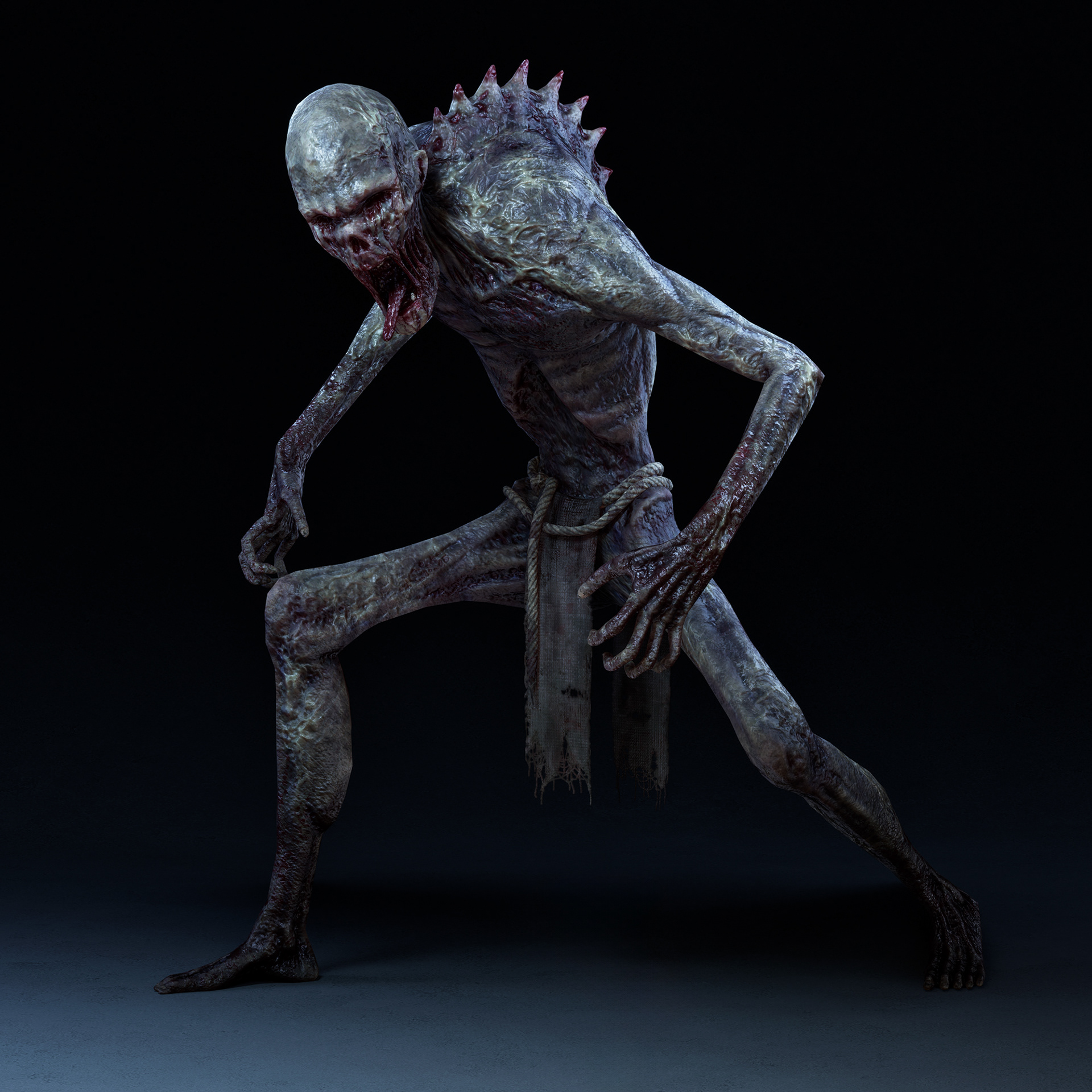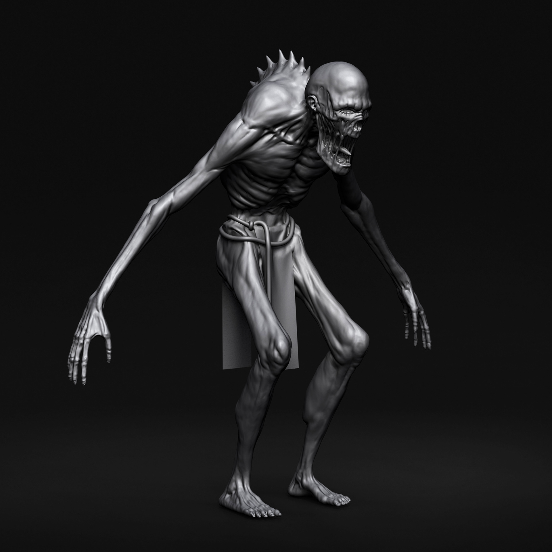 "Elite Zombie" character I crafted for Hordes of Hunger game. I was responsible for the full character creation pipeline, block-out and high-poly sculpting in ZBrush, retopology in Blender, UV unwrapping in RizomUV, texturing in Substance Painter, and shader/texture configuration in Unreal Engine 5. Based on a concept by Kinga Makowska.
