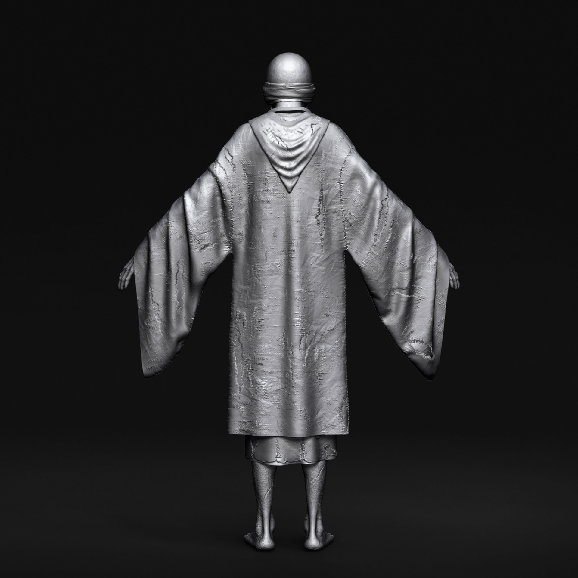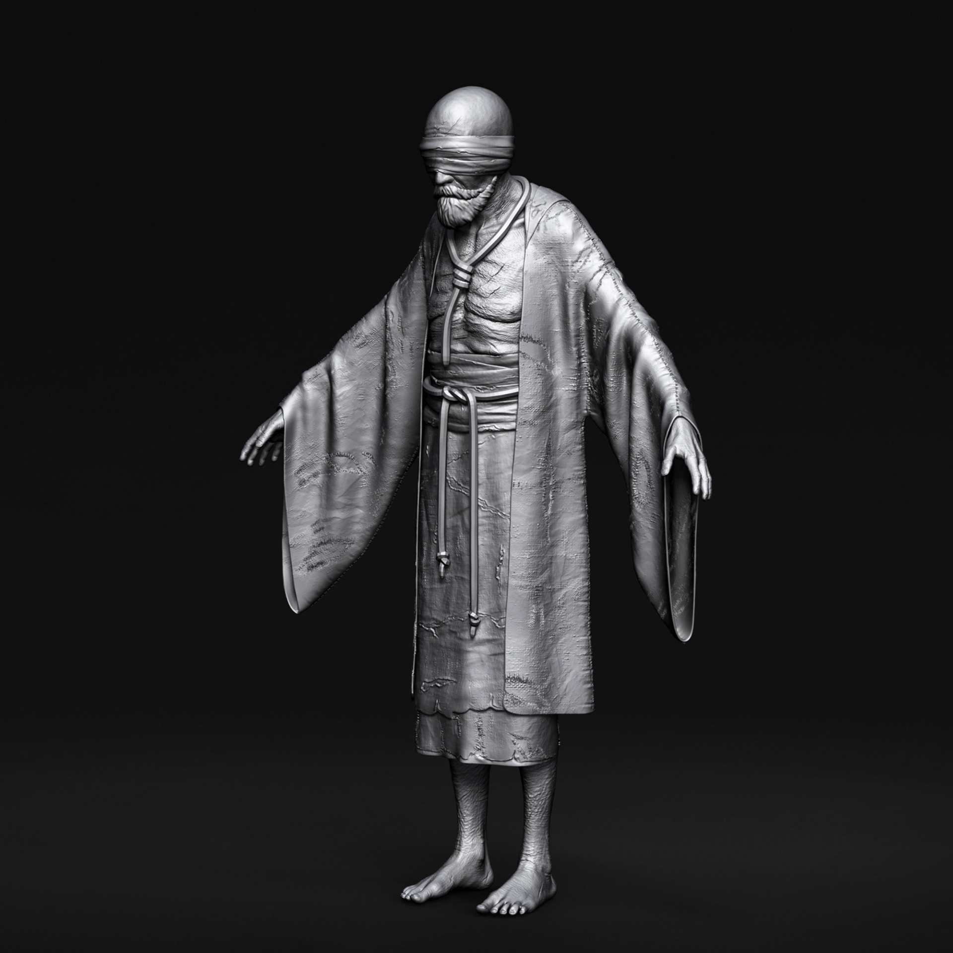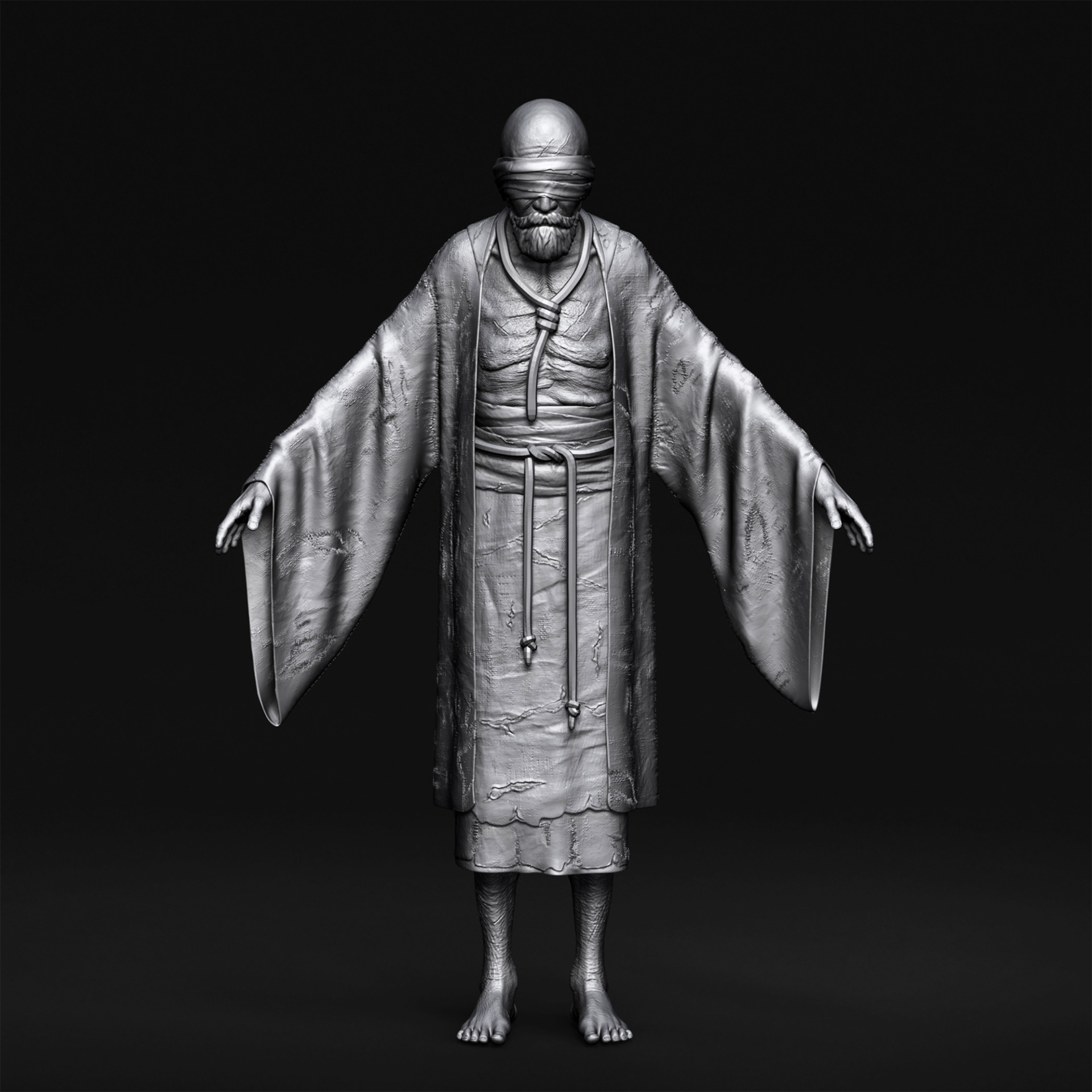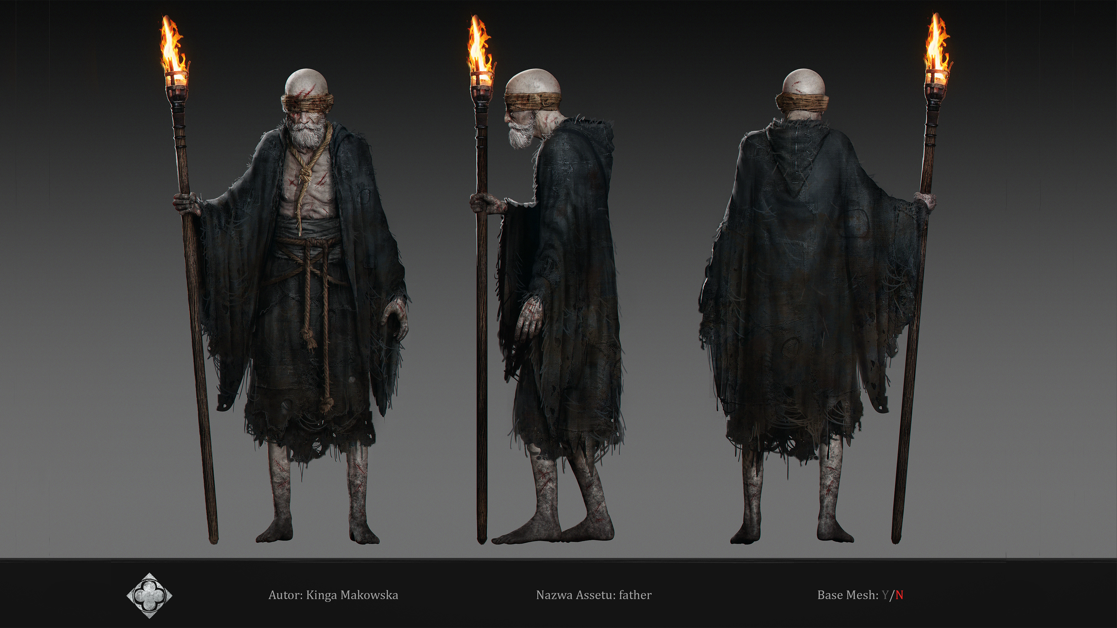 "Father" character I crafted for Hordes of Hunger game. I was responsible for the full character creation pipeline, including block-out and high-poly sculpting in ZBrush, assets modeling in 3dsMax, cloth simulation in Marvelous Designer, retopology in 3dsMax, UV unwrapping in RizomUV, texturing in Substance Painter, grooming beard and mustache (hair cards) and shader/texture configuration in Unreal Engine 5. Character based on a concept by Kinga Makowska.