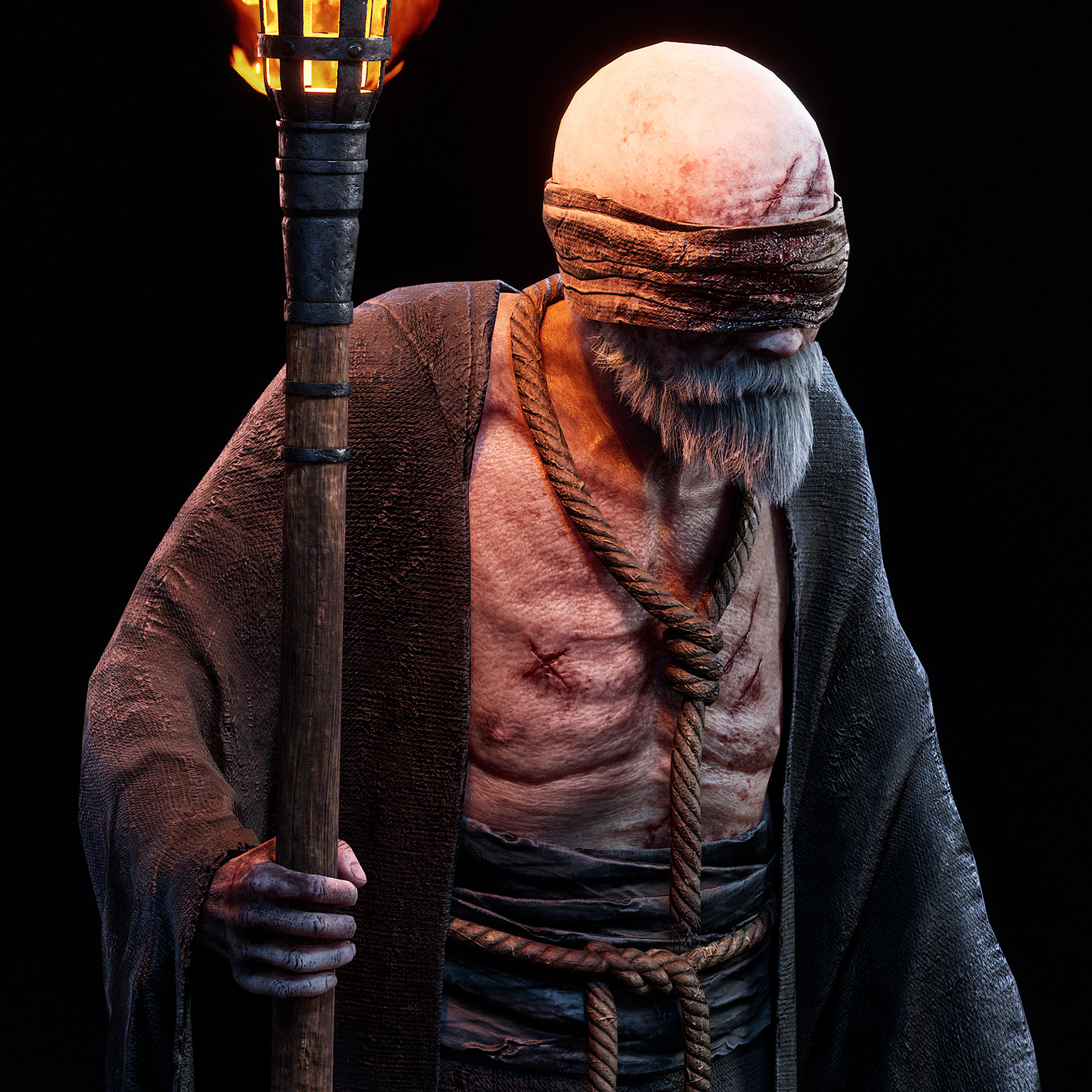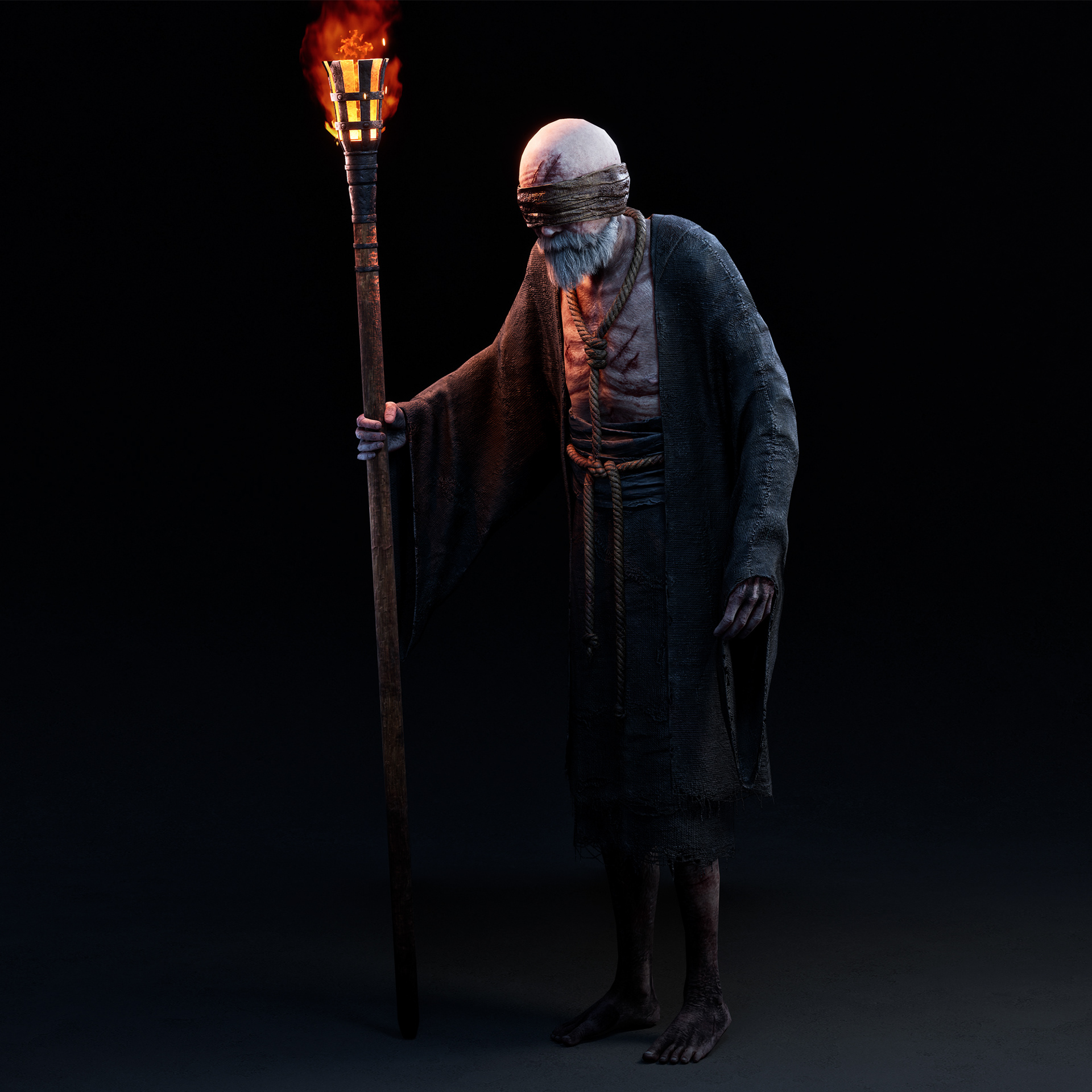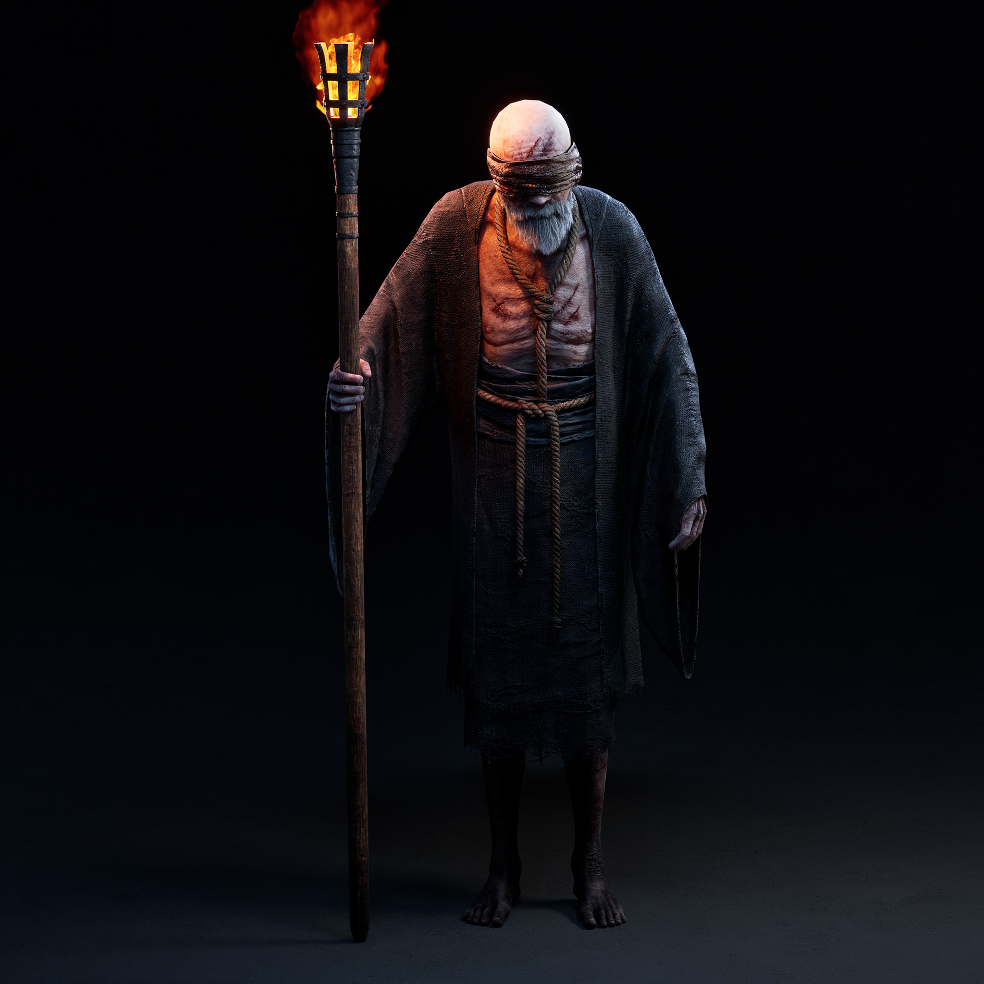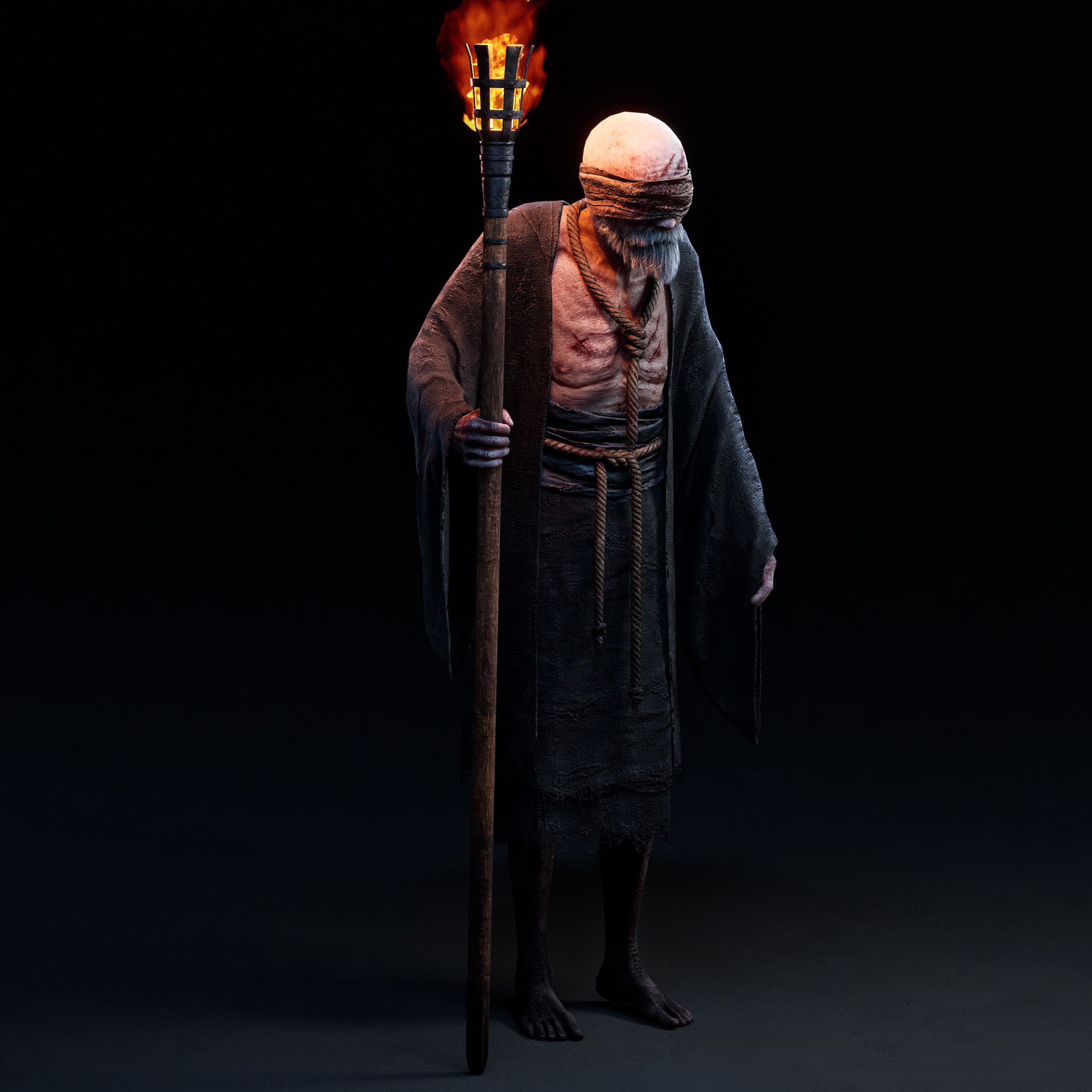 "Father" character I crafted for Hordes of Hunger game. I was responsible for the full character creation pipeline, including block-out and high-poly sculpting in ZBrush, assets modeling in 3dsMax, cloth simulation in Marvelous Designer, retopology in 3dsMax, UV unwrapping in RizomUV, texturing in Substance Painter, grooming beard and mustache (hair cards) and shader/texture configuration in Unreal Engine 5. Character based on a concept by Kinga Makowska.