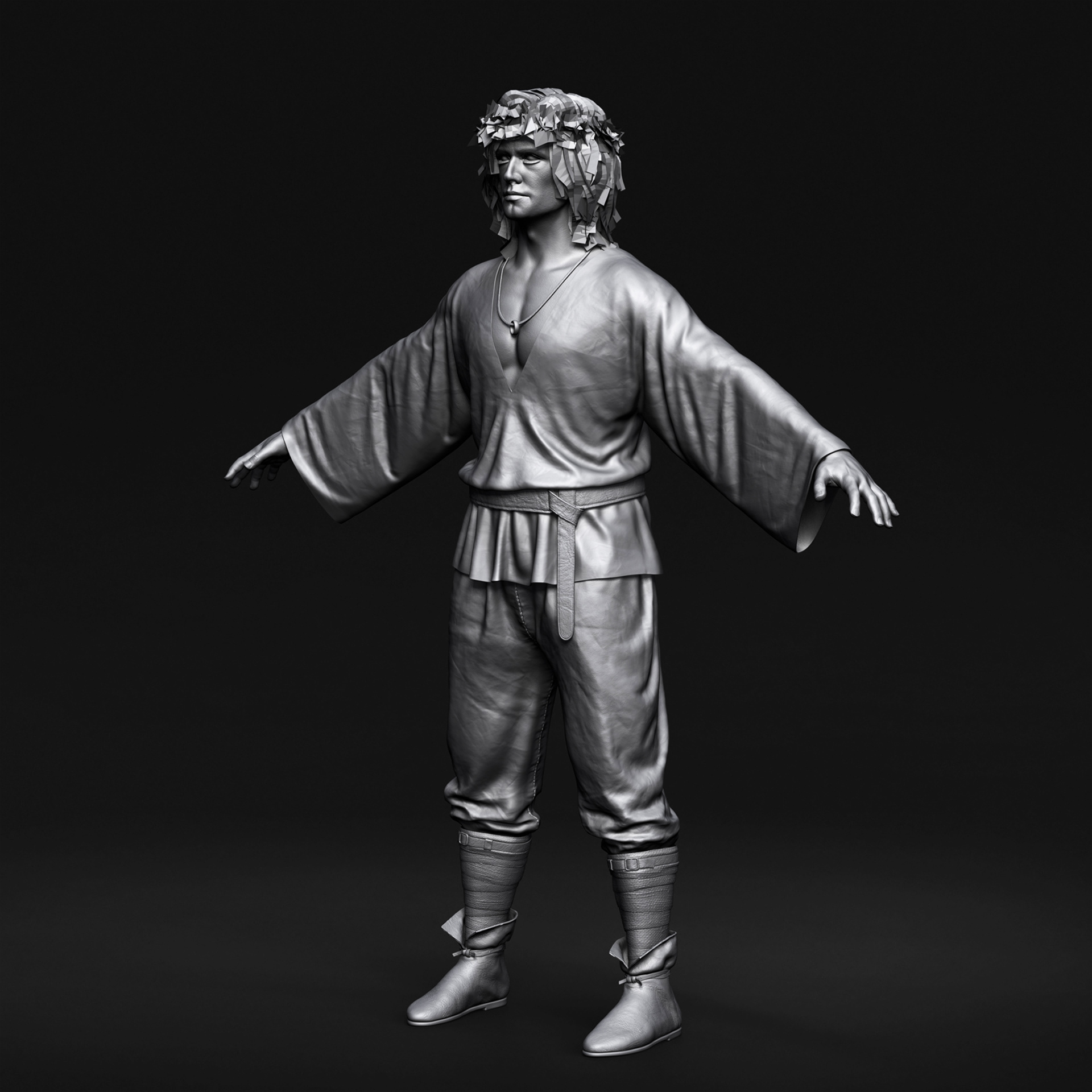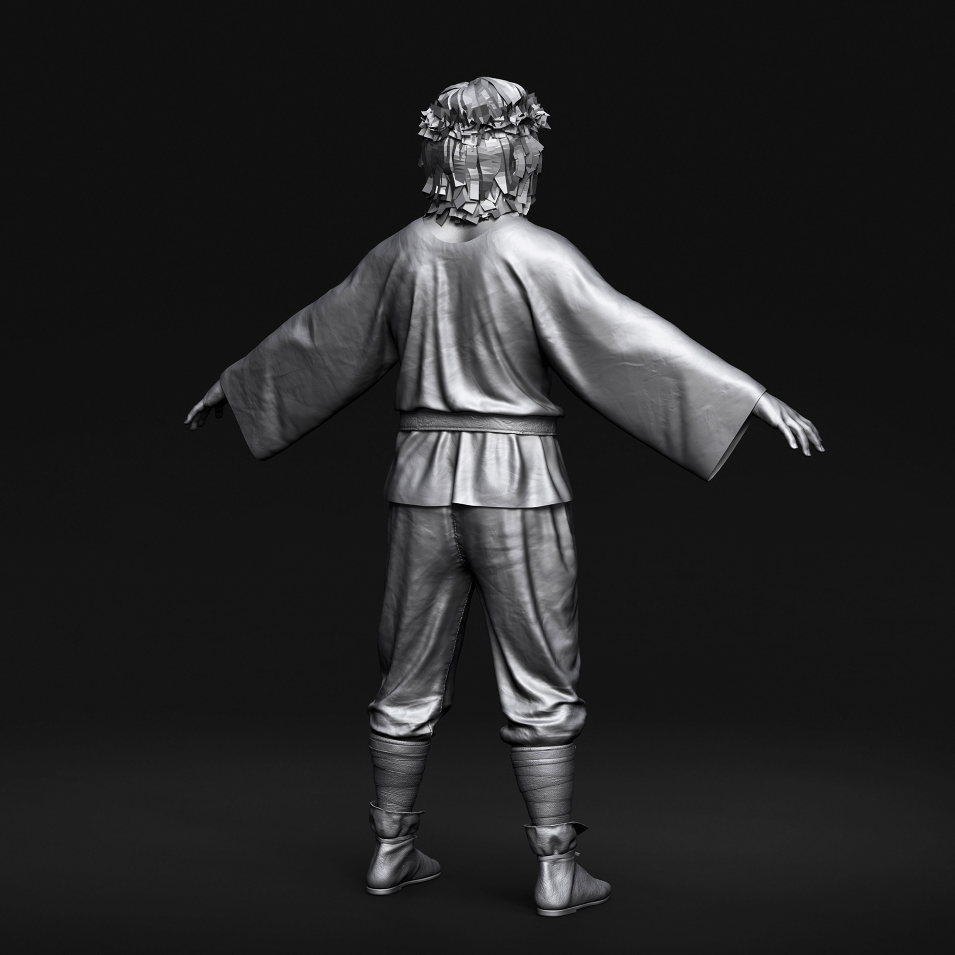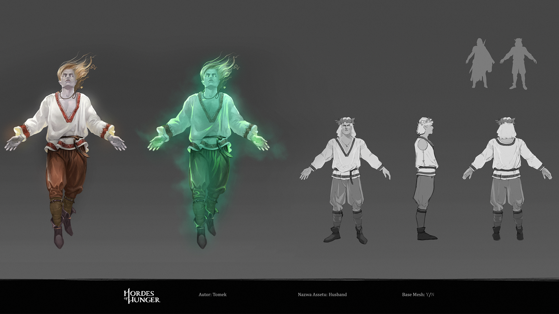"Goom" character I crafted for Hordes for Hunger game. I was responsible for the full character creation pipeline, block-out, high-poly sculpting in ZBrush, assets modeling, cloth simulation in Marvelous Designer, retopology in Blender, UV unwrapping in RizomUV, texturing in Substance Painter, grooming hair (hair cards) and shader/texture configuration in Unreal Engine 5. Character based on a concept by Tomasz Badalski.