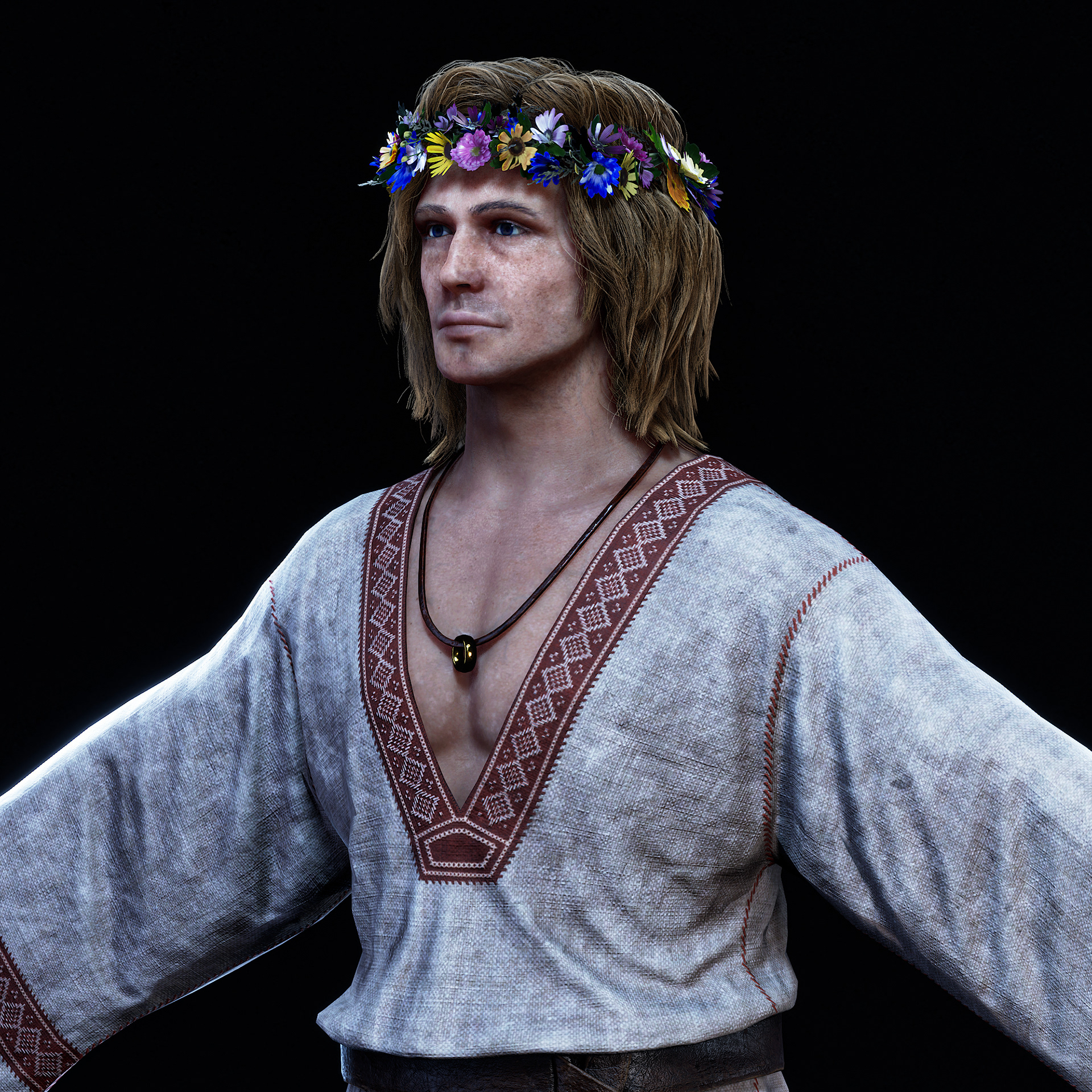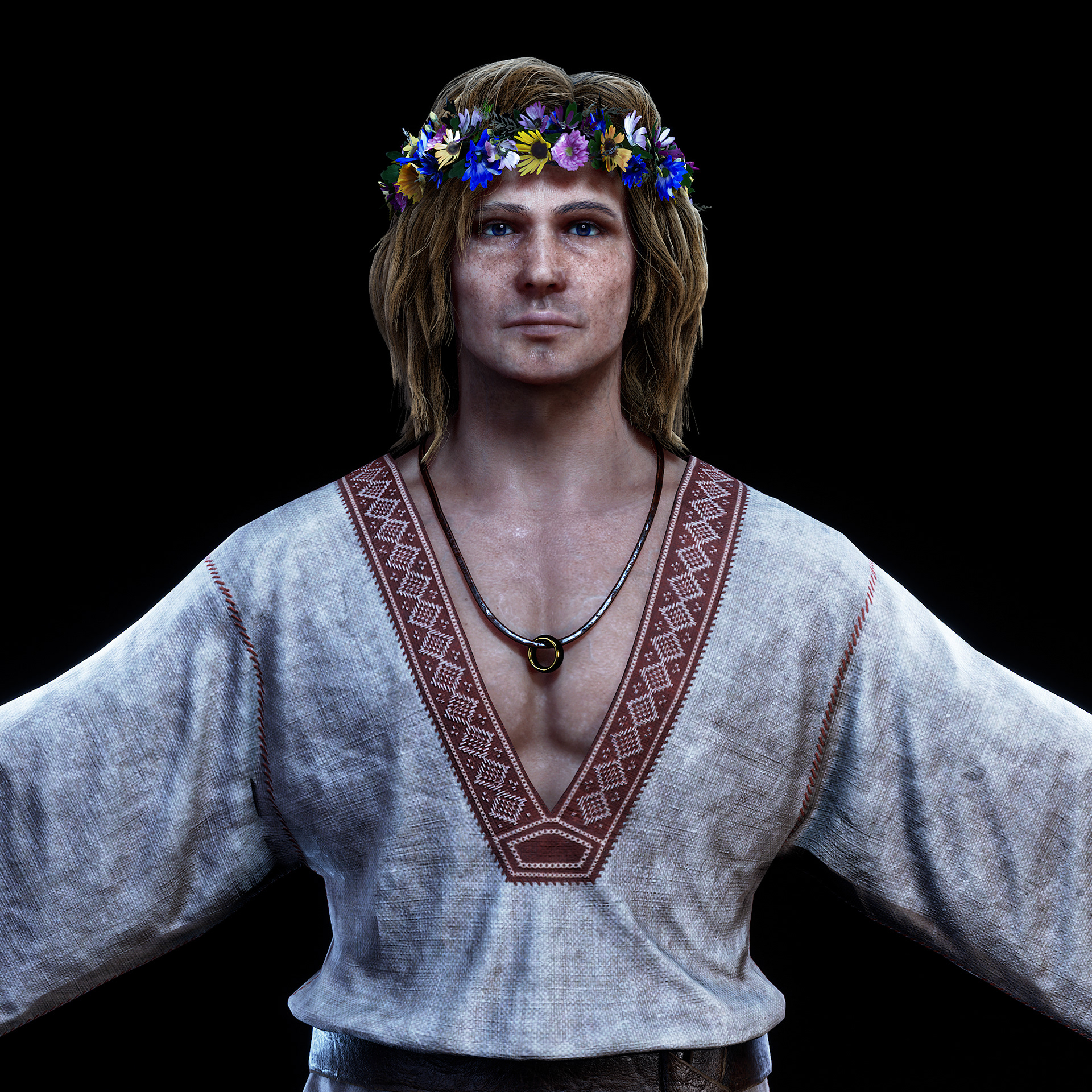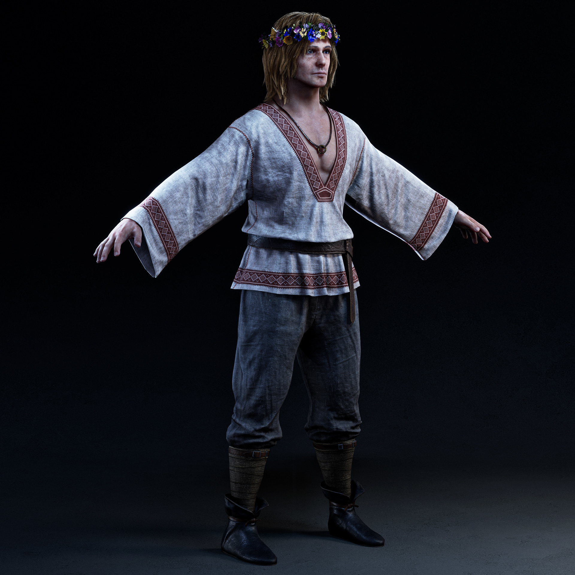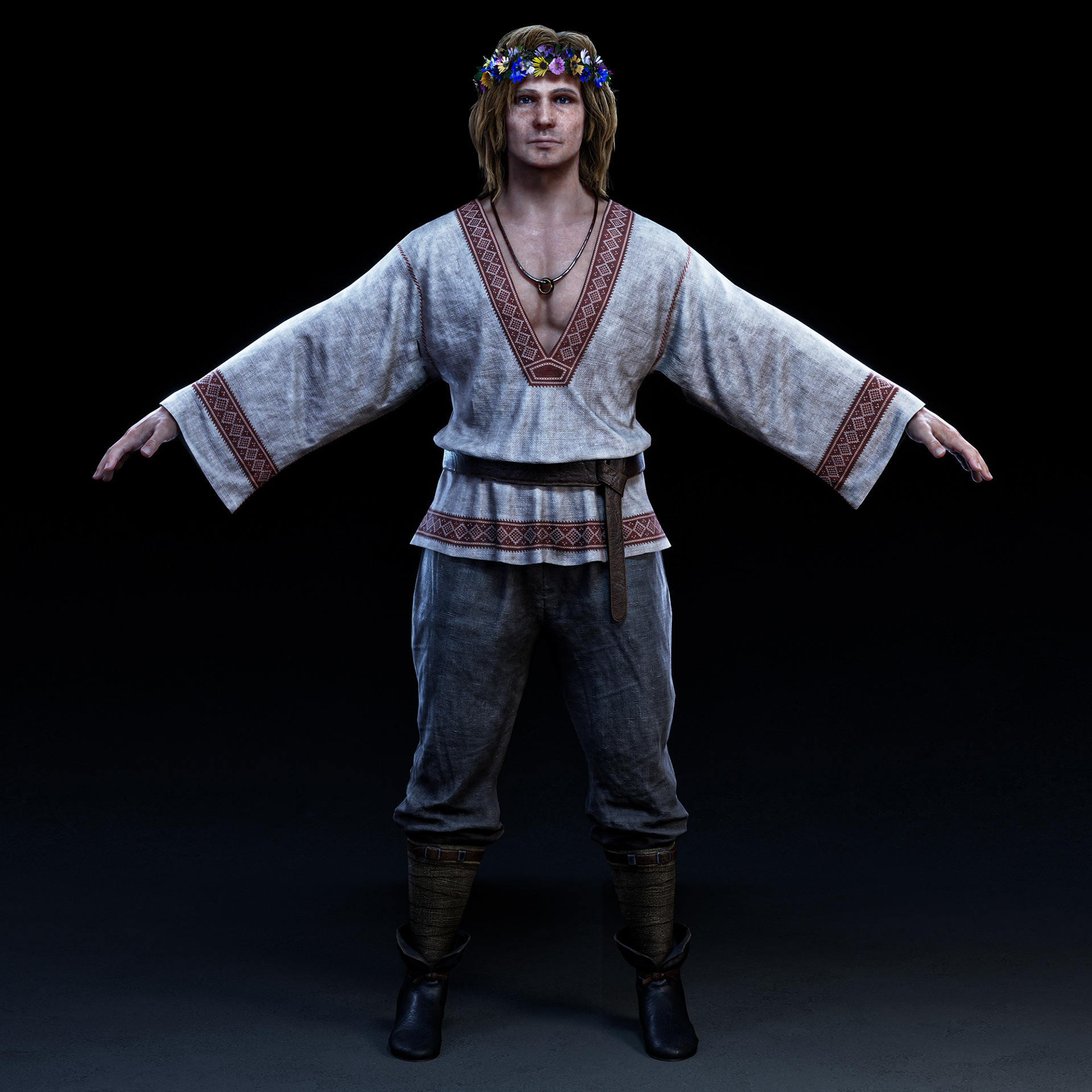 "Goom" character I crafted for Hordes for Hunger game. I was responsible for the full character creation pipeline, block-out, high-poly sculpting in ZBrush, assets modeling, cloth simulation in Marvelous Designer, retopology in Blender, UV unwrapping in RizomUV, texturing in Substance Painter, grooming hair (hair cards) and shader/texture configuration in Unreal Engine 5. Character based on a concept by Tomasz Badalski.