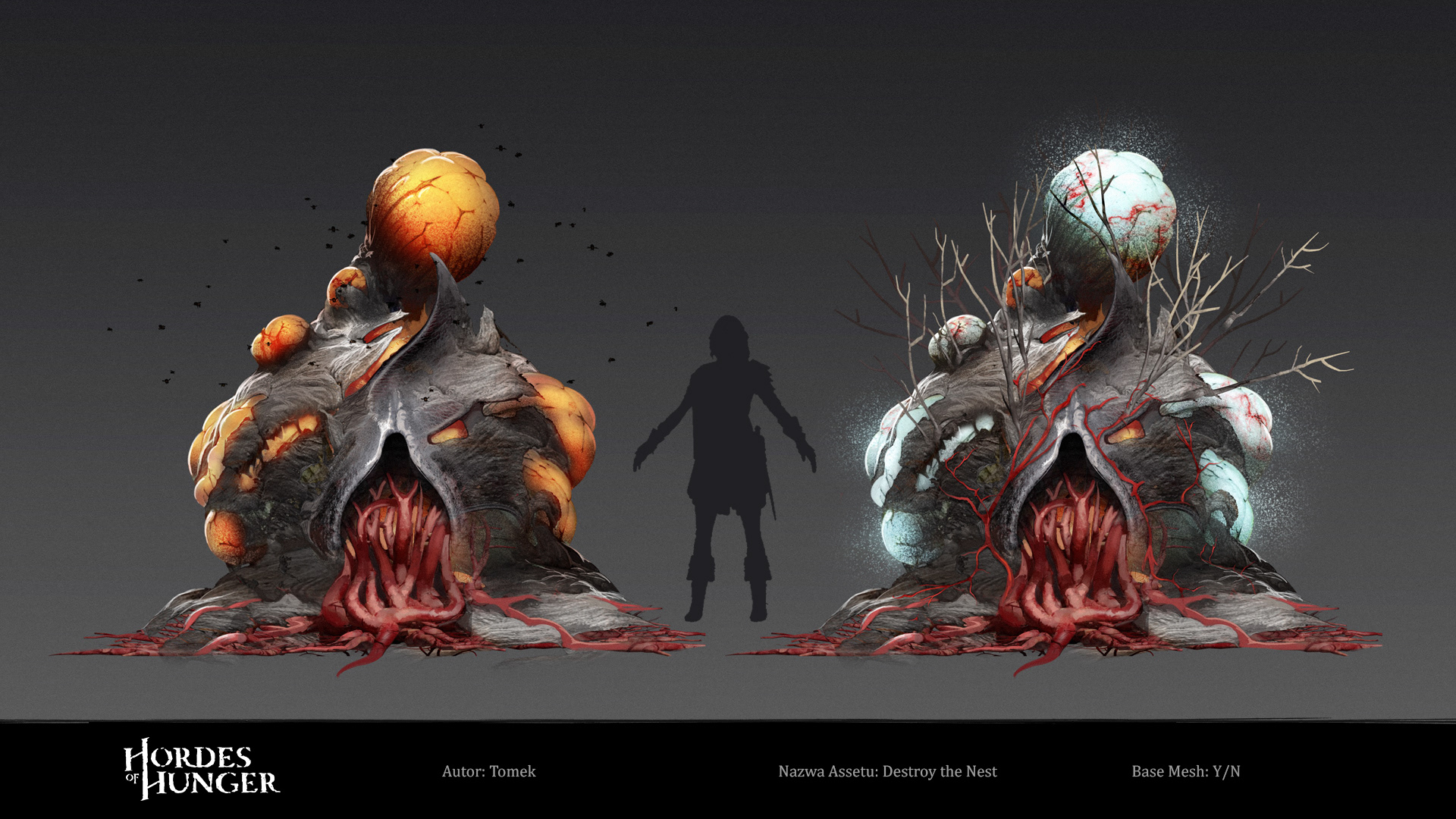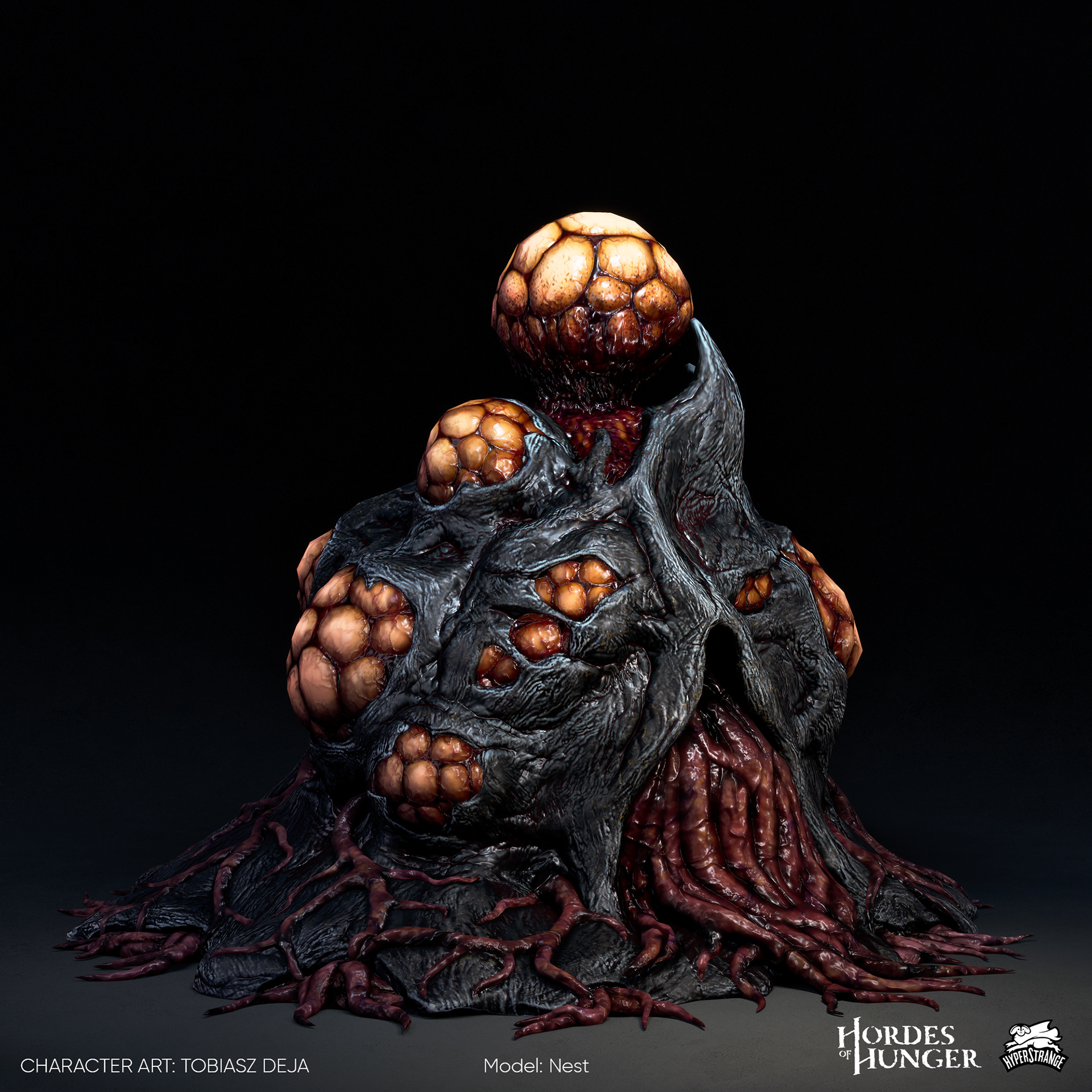 An interactive spawning point for enemies which I crafted for Hordes of Hunger game. I was responsible for the full creation pipeline: block-out, high-poly sculpting in ZBrush, retopology, uv mapping, texturing in Substance Painter, shader and texture configuration in Unreal Engine 5. The asset was created based on original concept art by Tomasz Badalski.
